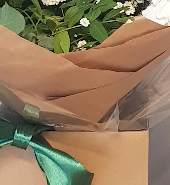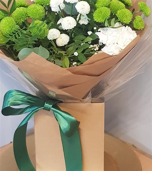 Emerald - green and white handtied birthday bouquet  zoom 2Emerald - green and white handtied birthday bouquet  zoom 3