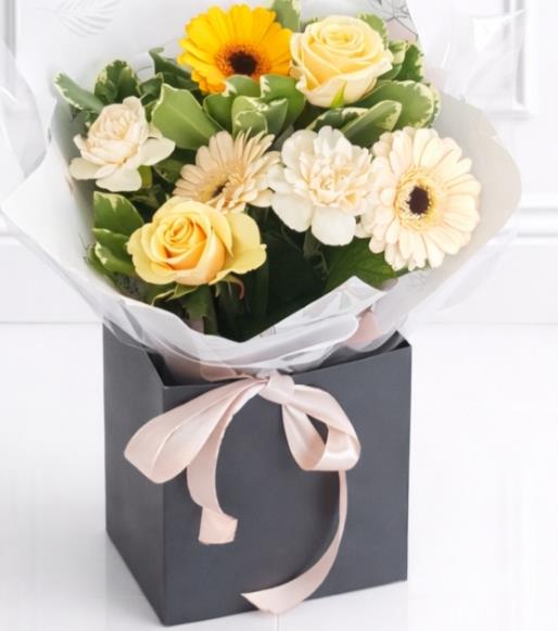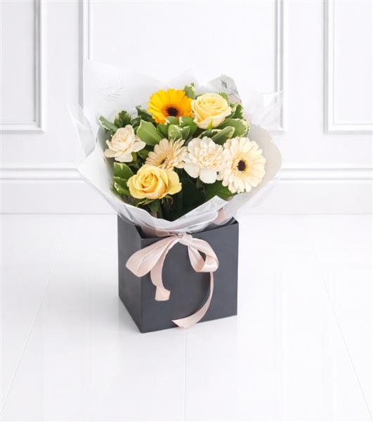 A small but thoughtful gift , our petite bouquet are handtied in water,using seasonal flower's chosen by your florist . wrapped in eco friendly wrap and boxed for presentation