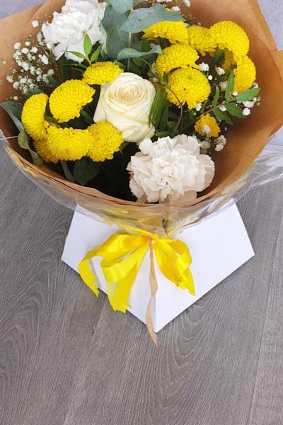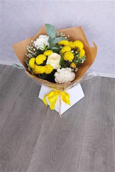 Sunny yellow & white rose bouquet-Bright handtied flowers  1